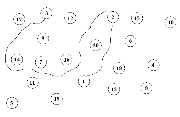 Na papír nakreslíme nepravidelně rozmístěných dvacet očíslovaných koleček (viz obrázek). Soupeři pak střídavě spojují čísla – první od jedničky k dvojce, druhý od dvojky ke trojce atd. Čáru se snaží vést tak, aby znesnadnili soupeři další postup. Kdo se totiž dotkne svou novou čárou čáry již nakreslené, má trestný bod. Na tomto místě se ale vytvoří můstek – tudy se pro příště již může beztrestně přecházet. Kdo má na konci více trestných bodů, prohrál.