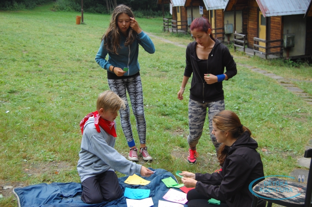 Potřeby: rozstříhané barevné papíry pro různé druhy zboží; peníze či jinou měnu, lano