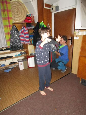 Na lístečky se napíší dvojslovná spojení (úměrná věku hráčů) jako např.: perníková chaloupka, líný kuchař, zelený mimozemšťan, veselý popelář, divoká kobyla, vysmátý kovboj, jednonohý pirát,... a pod. Měli jsme jich asi 30. (Poznatek ze hry je, že pro příště je lepší volit raději jednodušší slovní spojení - ještě jednodušší než uvedené. Je to pro hru lepší. Příliš složitá se neosvědčila).