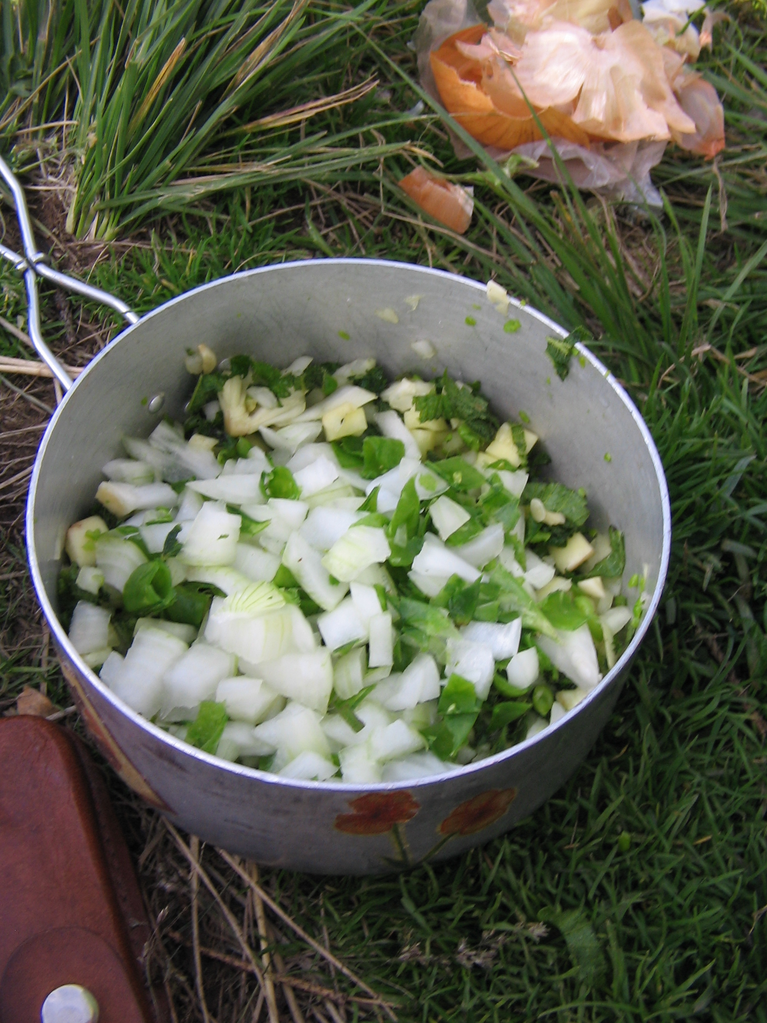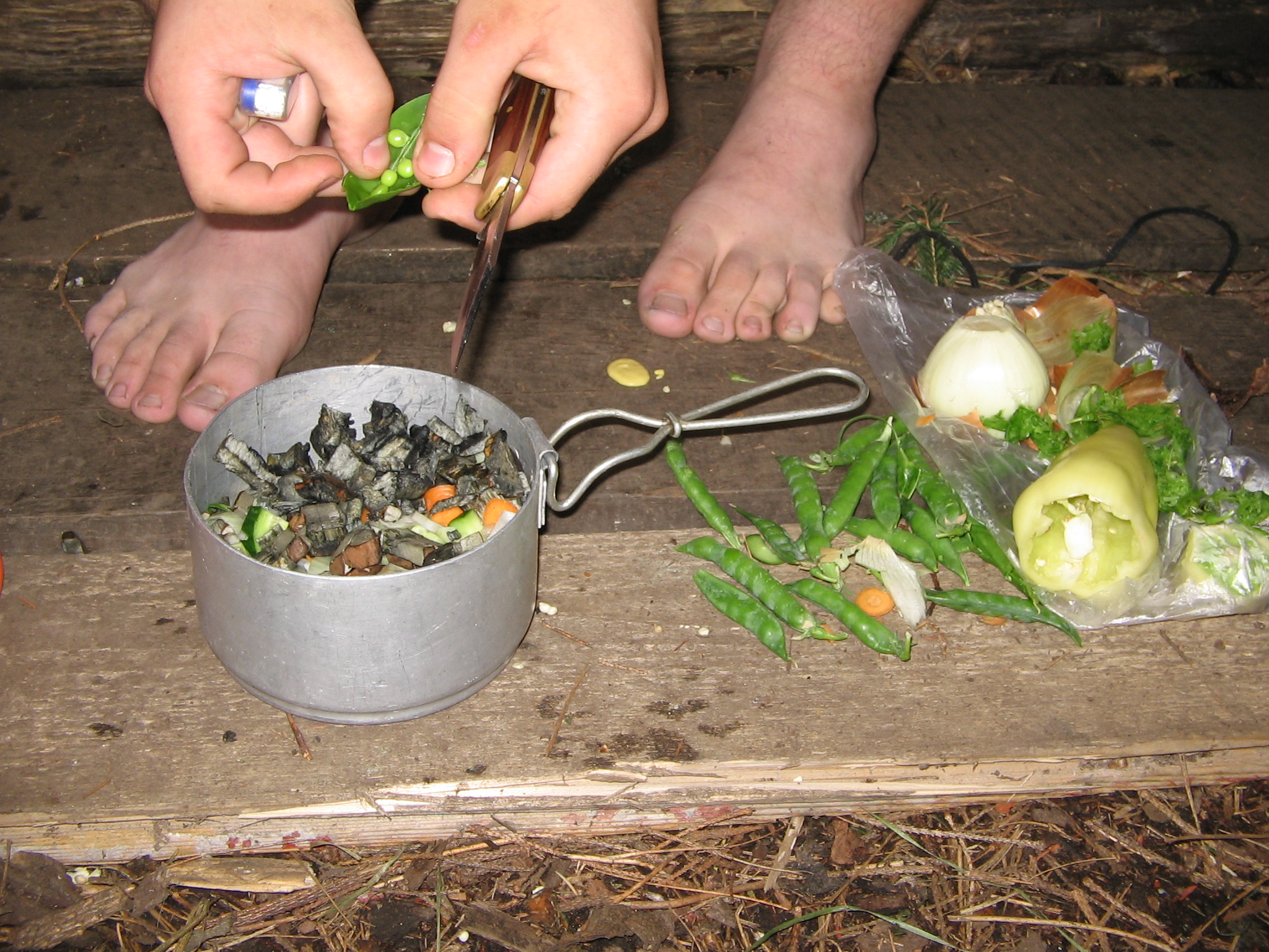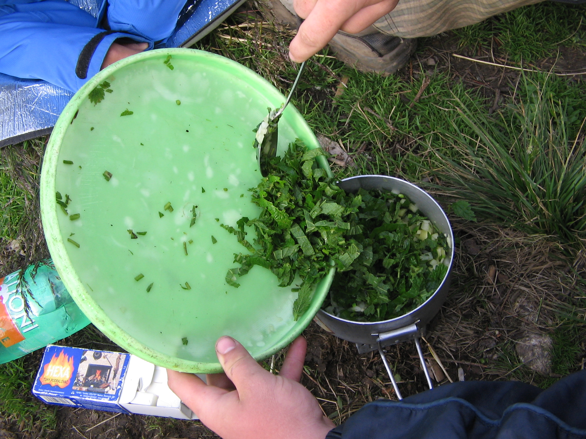 - jedli jsme jen ze zásob, které jsme měli na zádech (vločky, cibule, česnek, pár lusků a paprika) a toho, co jsme našli (houby, kopřivy, sůl)